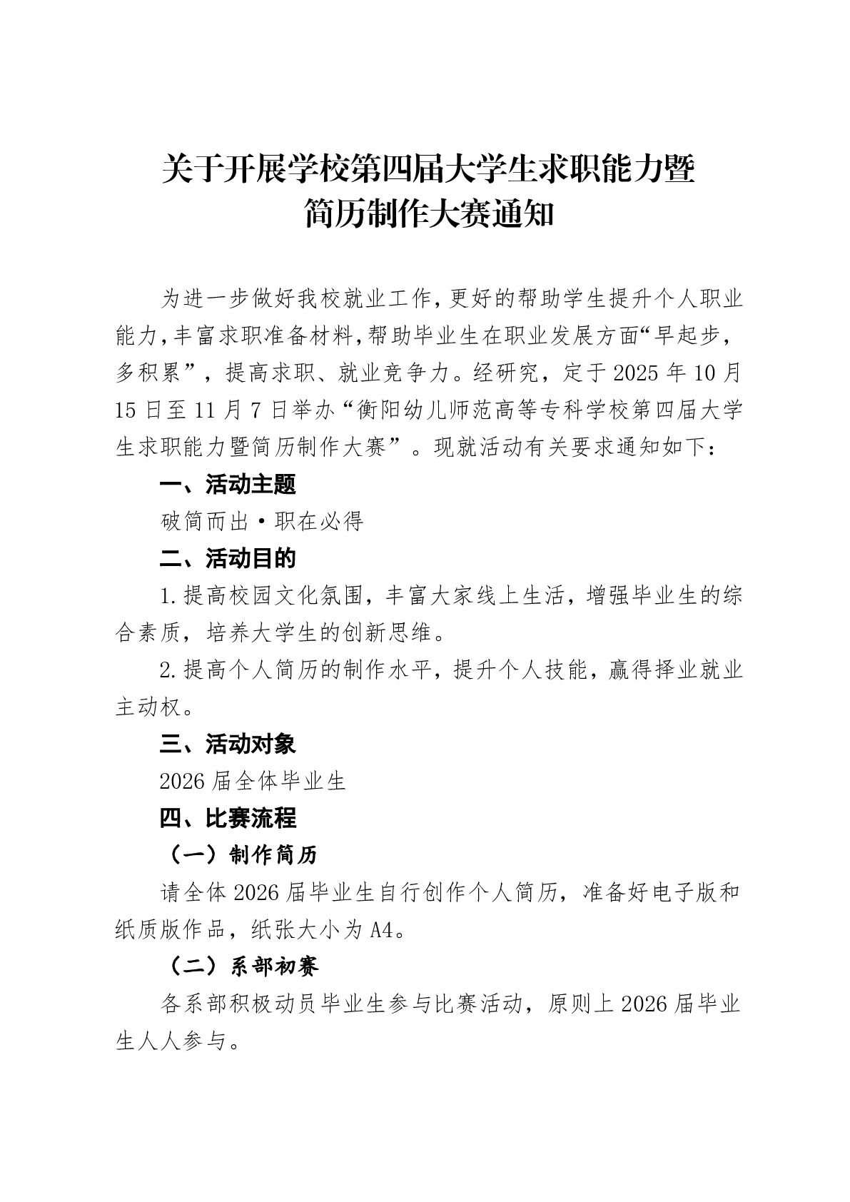 關(guān)于開展2026屆畢業(yè)生簡歷制作暨求職能力大賽的通知